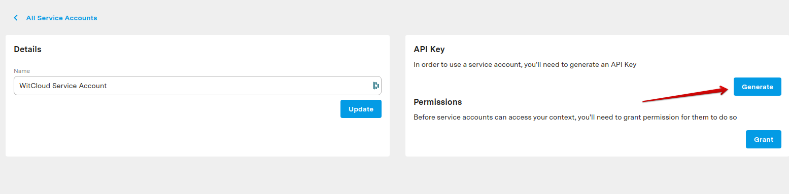 Click on Generate button and copy the API key that you can paste in WitCloud