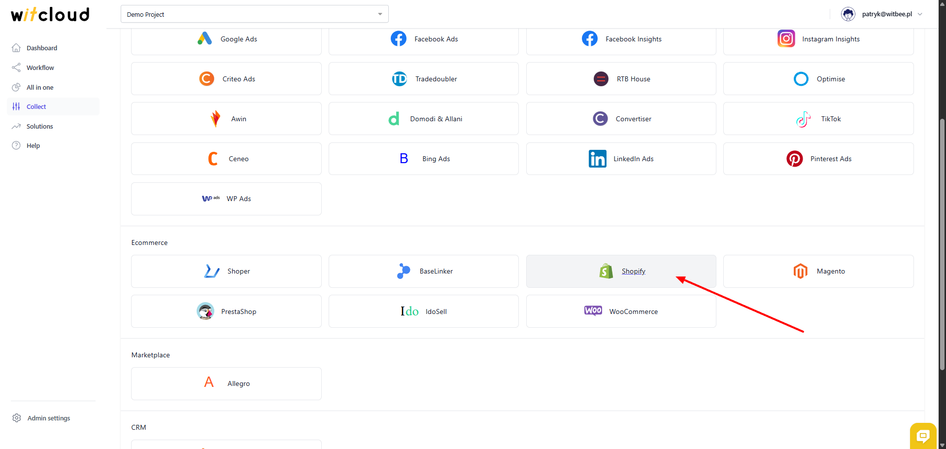 Ten moduł integruje się z Shopify, umożliwiając zbieranie danych e-commerce i zapisywanie ich w Google Cloud BigQuery. Zdobądź głębszy wgląd w swoje dane i optymalizuj efektywność działań ecommerce dzięki zbieraniu danych w czasie zbliżonym do rzeczywistego.