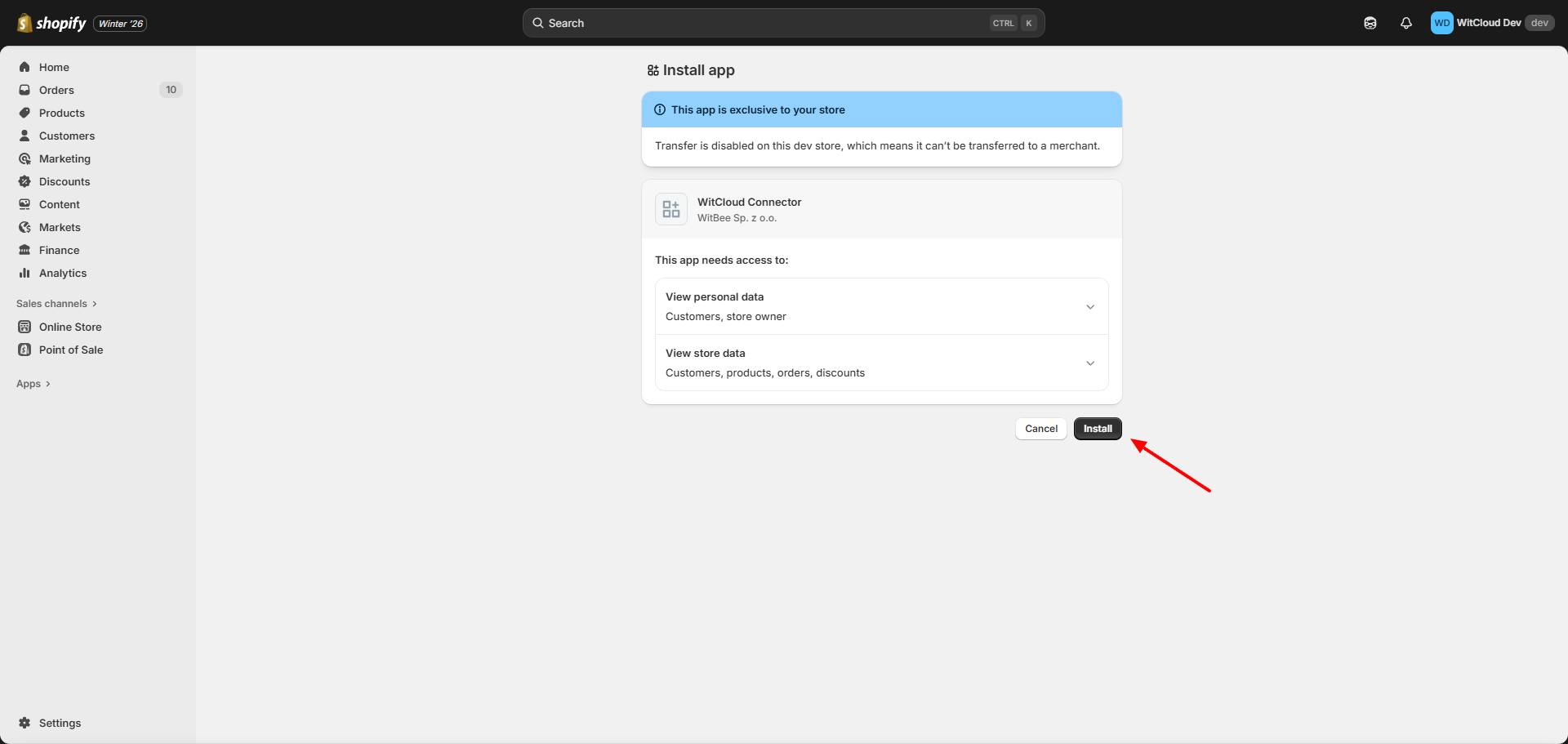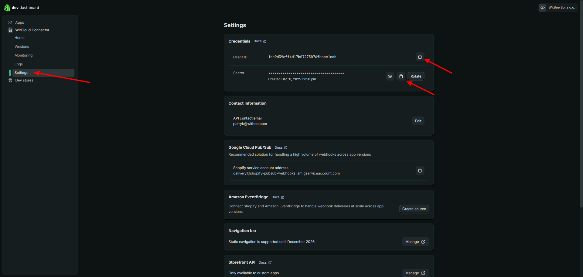 Gotowe! Masz już Client ID oraz Client Secret potrzebne do autoryzacji Shopify w WitCloud. Użyj tych danych w formularzu autoryzacji podczas konfiguracji integracji Shopify.