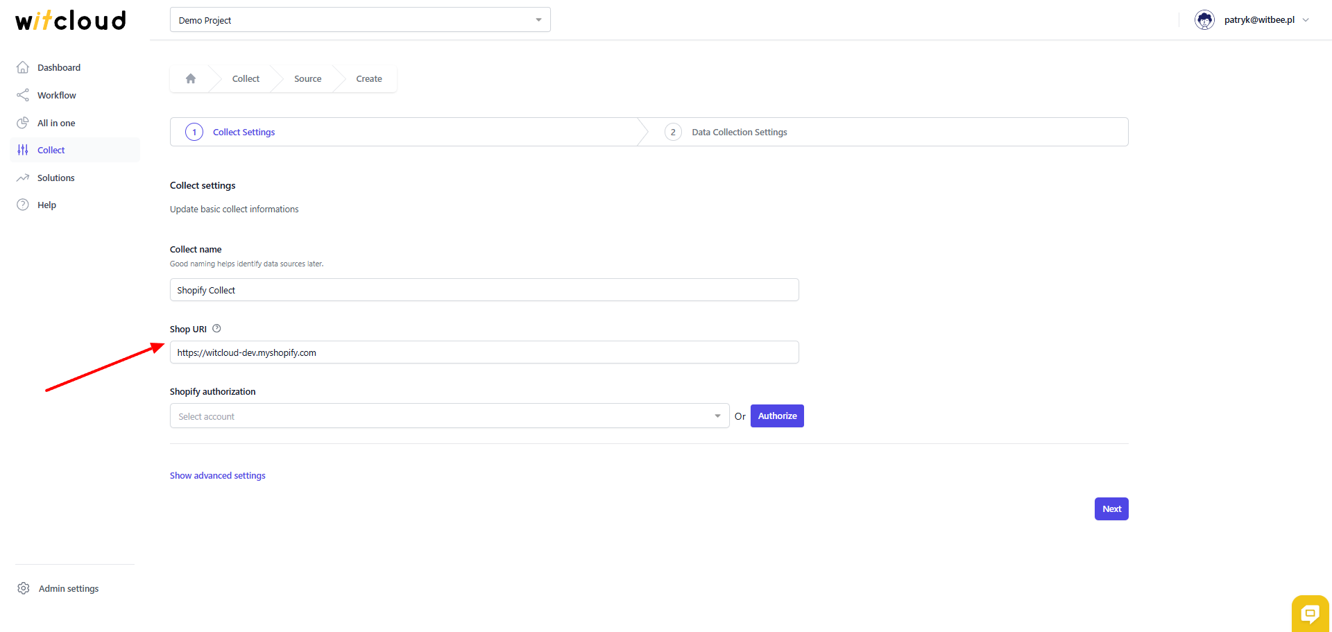 Podaj adres URL sklepu — adres URL Twojej platformy ecommerce.