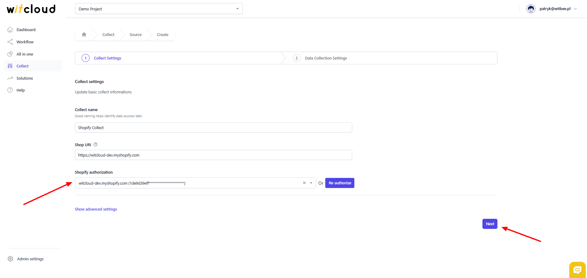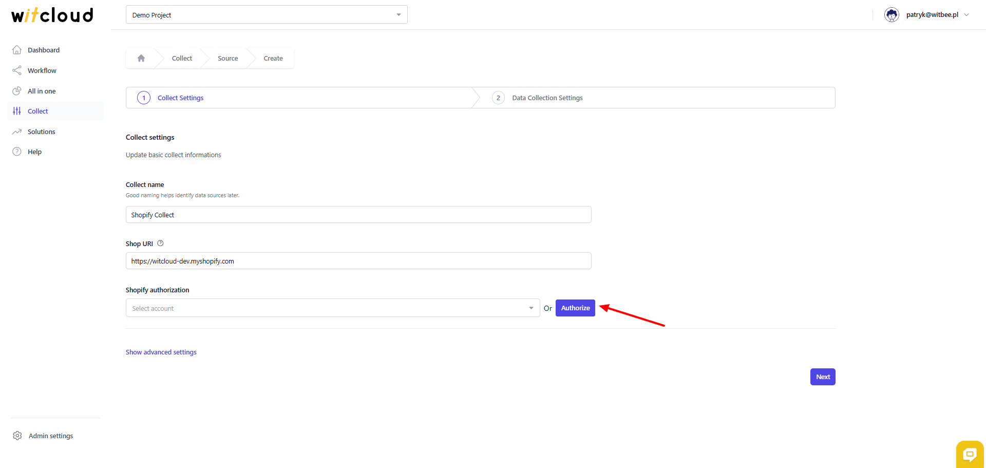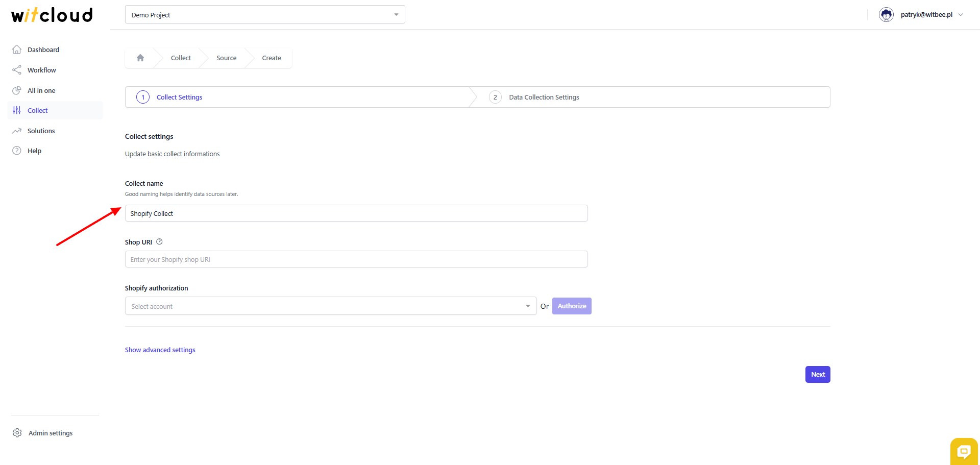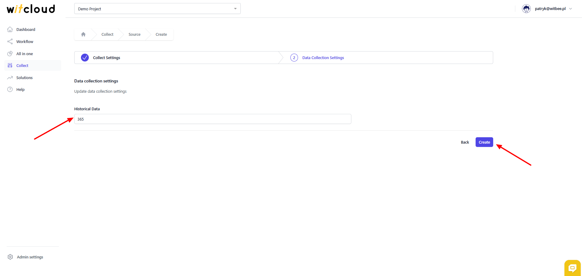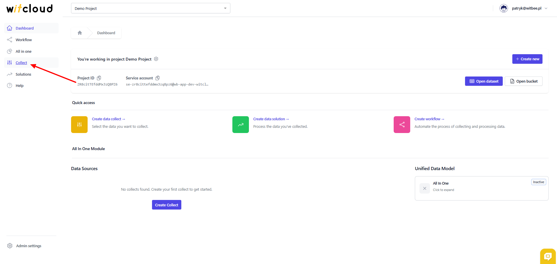Przejdź do sekcji Collect w menu > kliknij Create Data Collect.