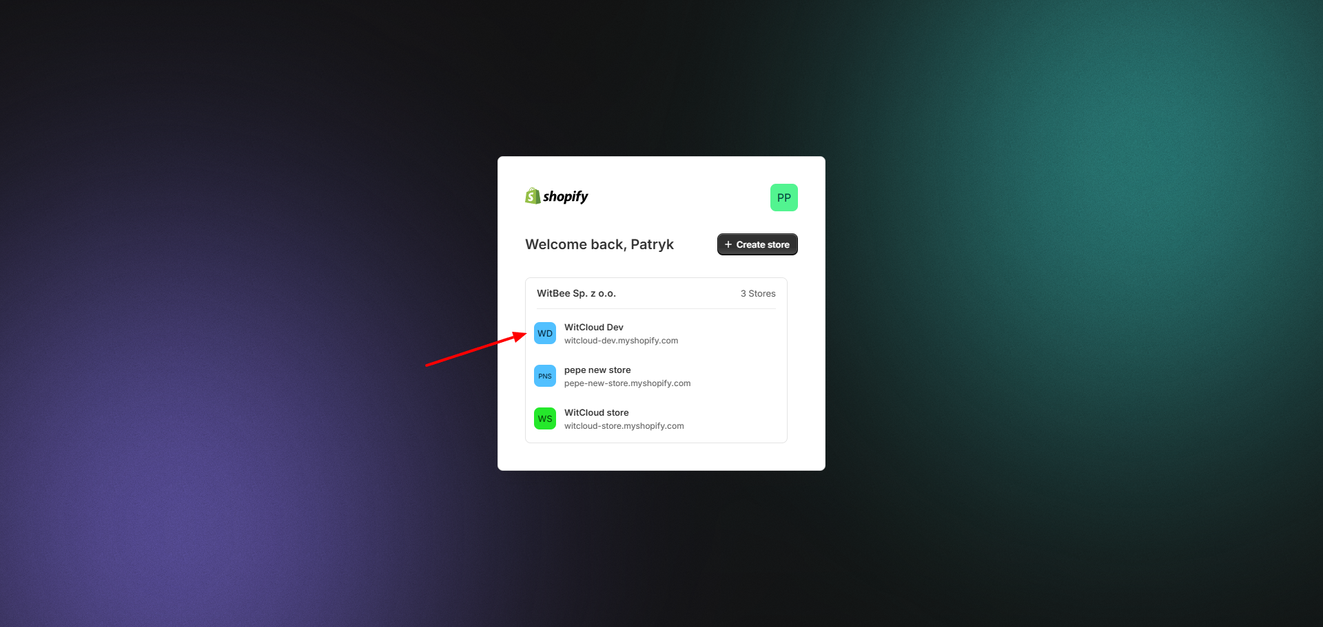 Jeżeli masz wiele sklepów, wybierz ten, w którym chcesz zainstalować aplikację.