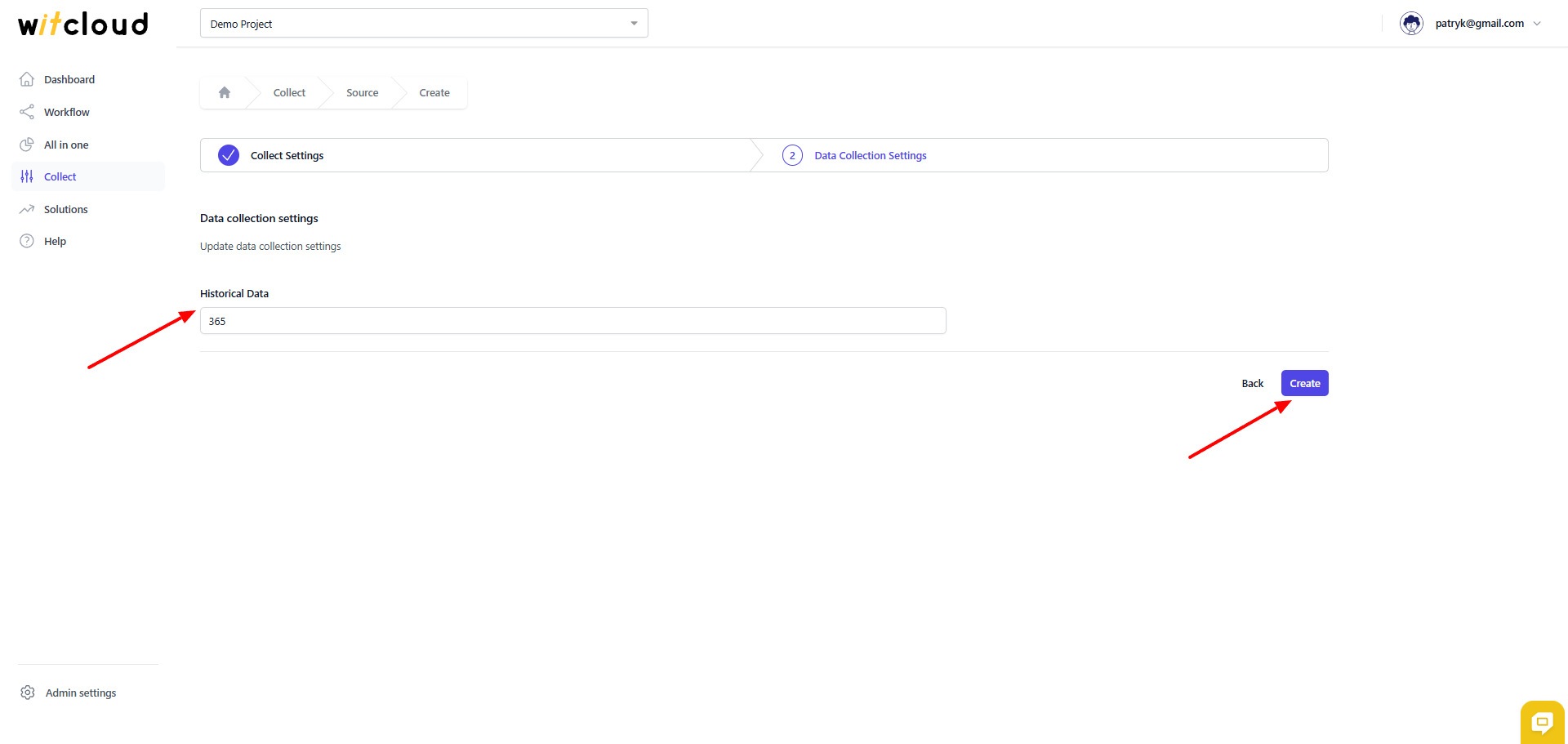Przejdź do sekcji Collect w menu > Kliknij Create Data Collect.